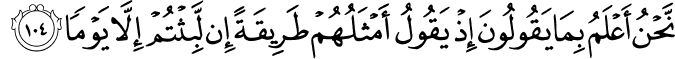naḥnu ʾaʿlamu bi-mā yaqūlūna ʾidh yaqūlu ʾamthaluhum ṭarīqatan ʾin labithtum ʾillā yawman