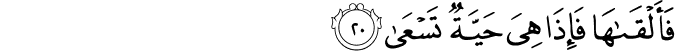 fa-ʾalqāhā fa-ʾidhā hiya ḥayyatun tasʿā