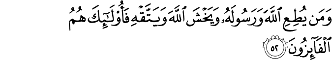 wa-man yuṭiʿi llāha wa-rasūlahū wa-yakhsha llāha wa-yattaqhi fa-ʾulāʾika humu l-fāʾizūna