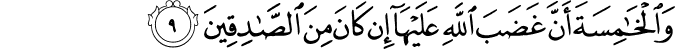 wa-l-khāmisata ʾanna ghaḍaba llāhi ʿalayhā ʾin kāna mina ṣ-ṣādiqīna