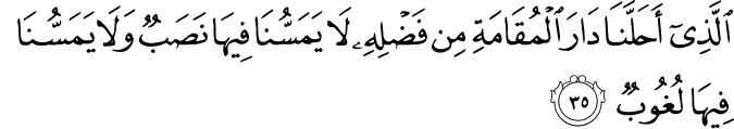 alladhī ʾaḥallanā dāra l-muqāmati min faḍlihī lā yamassunā fīhā naṣabun wa-lā yamassunā fīhā lughūbun